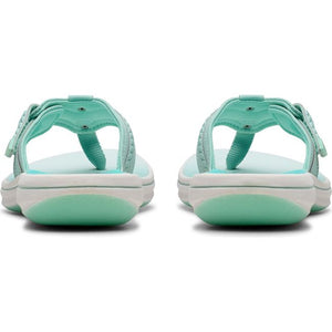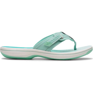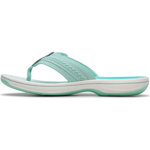 Celebrate the sunny season in the Clarks Breezey Sun Sandals, where relaxed style meets remarkable comfort for every beach day or casual outing. Featuring an adjustable hook-and-loop closure with detailed braiding and stitching on the strap, a plush EVA footbed, and a flexible TPR outsole on a modest 1-1/8" heel, these sandals provide a secure, stylish fit for all-day wear.